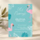 Convite Aqua & Pink Flamingo Tropical Birthday