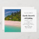 A birthday invitation with a beautiful photograph. A scenic tropical beach with aquamarine water and a whote sandy beach with a lush forest in the back. A solitary umbrella available for those who love seclusion.