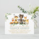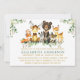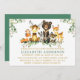 Watercolor Woodland Animal Chá de fraldas Invitation. Os bebês incluem Urso, Veado, Moose, Raccoon, Coelho Coelho, Raposa e Coruja em folhas de eucalipto e verde florestal. Texto Dourado.