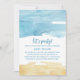 Este cartão de convite de aquarela com areia e mar "vamos fazer festa" é perfeito para uma despedida de solteira ou festa de noivado com tema de praia. O design abstrato apresenta textura de aquarela amarela e azul que é organizada para trazer vibrações do oceano à beira-mar.