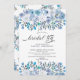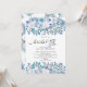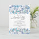 Linda cor d'água, luz azul, noiva, convite para o chá de chá com uma letra escrita escrita à mão e coordenação de trás floral.