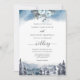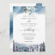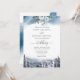 Convite de casamento elegante e único com mancha fluida de aquarela azul com detalhes florais pintados à mão e requintada paisagem de floresta montanhosa. Verso com mancha de aquarela azul em cascata. cartão com cena cativante com montanhas e pinheiros. NOTA: SE VOCÊ PREFERIR ESSE CONVITE COM O VERSO EM BRANCO, você pode fazer essa alteração seguindo esses passos fáceis: clique no botão azul "Editar Usando Ferramenta de Design" localizado no final das caixas de texto do modelo. Em seguida, na camada "verso", adicione um quadrado a partir de "elementos" no menu à esquerda. Arraste os cantos do quadrado com o mouse e faça-o ficar realmente grande, cobrindo todo o verso. Em seguida, altere a cor do quadrado para branco no menu à direita. Por fim, clique no botão "concluído" no canto superior. Isso tornará o verso do seu convite branco. Parte da nossa "Coleção Montanhas Azuis Rústicas" com uma variedade de produtos coordenados disponíveis.