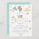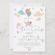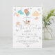 Molas e bonito aquarelas para um chá de fraldas celestial e feliz. Os balões trazem filhotes e presentes, com sutis quedas folhas de fundo.Um padrão de nuvem em sentido inverso. O chá de fraldas do templo "é uma menina!".
