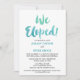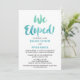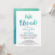 Este cartão de convite de recepção de casamento na praia com caligrafia em aquarela é perfeito para um casamento com tema de destino tropical. O design divertido e cheio de energia apresenta uma linda fonte de caligrafia em aquarela ombre em tons de verde-teal e azul-aqua. Cartões de RSVP combinando são vendidos separadamente.
