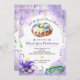 Celebre o Mardi Gras com este convite de festa impresso com um bolo-rei em aquarela contra um fundo de vinheta em aquarela roxa. Contas e fitas douradas, verdes e roxas estão espalhadas ao redor do convite com duas máscaras de Mardi Gras na parte inferior do convite. Aquarela com flor de lis acentua a peça. Perfeito para uma celebração do Mardi Gras ou Terça-feira Gorda, um chá de noiva ou de casamento com tema Mardi Gras, uma despedida de solteira em NOLA ou uma celebração de aniversário. Disponível com produtos correspondentes.