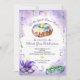 Celebre o Mardi Gras com este convite de festa impresso com um bolo de reis em aquarela contra um fundo de vinheta em aquarela roxa. Contas e fitas douradas, verdes e roxas estão espalhadas ao redor do convite com duas máscaras de Mardi Gras na parte inferior do convite. O acento de flor de lis em aquarela complementa a peça. Perfeito para uma celebração de Mardi Gras ou Terça-feira Gorda, um chá de noiva ou de casamento com tema Mardi Gras, uma despedida de solteira em NOLA ou uma celebração de aniversário. Disponível com produtos correspondentes.