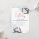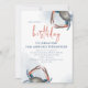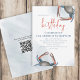 Este design apresenta um convite de aniversário simples de caranguejo azul em aquarela com um código QR para o site, uma URL online com um jantar de caranguejo náutico, uma festa de cozimento ao estilo costeiro à beira-mar, ótimo para convite de evento de jantar de frutos do mar, com uma fonte tipográfica moderna e elegante, uma tipografia de caligrafia moderna, com um estilo da costa de Maryland, Nova Inglaterra e Maine, pernas de caranguejo cozidas de forma caprichosa, um oceano de água divertido e elegante, com um crustáceo azul marinho, com uma água azul, oceano, convite náutico do mar.