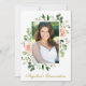 Quinceanera, Elegante moderno, Cores Aquáticas, Cor de Rosa, Esbranquiçada, Rosas Florais e Curso Botânico Dourado Cartão de Convite Fotográfico