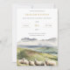 Este convite apresenta uma ilustração original de aquarela digital de um rebanho de ovelhas das Terras Altas com um fundo montanhoso tranquilo.