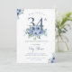 Convites de Aniversário de Adulto | Convite de Aniversário Chic Floral em Aquarela Azul Desbotado 34º