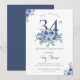Convite Aquarela Floral Azul Empoeirado 34º Aniversário Ch