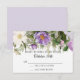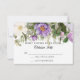 Lavanda, roxo e marfim flores antigas com folhas esmeralda profundas em um Cartão de Resposta RSVP. Arte botânica vintage de flores de jardim com folhas de samambaia selvagem da floresta e folhagem. O verso tem um fundo lavanda cinza suave. Direitos autorais, Audrey Jeanne Roberts.