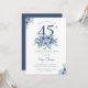 Convite Aquarela Flores Azul Poeira 45º Aniversário Chique