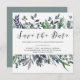 Este cartão moderno de save the date de casamento botânico apresenta folhas de aquarela em tons de verde, azul e cinza para um visual elegante que é ao mesmo tempo minimalista e rústico.