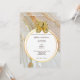 Com uma bela mistura de azul aguarela; laranja; tons de dourado postiço e marrom se misturando, uma ilustração vintage de um polvo amarelo mostarda repousa sobre a borda superior de uma moldura geométrica dourada com um rebaixo branco que tem um modelo para sua declaração personalizada da ocasião especial que você está celebrando. Este design gráfico elegante e sofisticado é ideal para todas as ocasiões especiais com tema subaquático; oceano; litoral e praia. Personalize os modelos para se adequar ao seu evento.