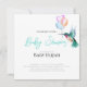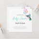 Convide os convidados para o seu chá de fraldas com este convite elegante desenhado com um beija-flor intricadamente detalhado e balões de cor suave. Estimulado em branco clássico com guião ouro e aqua. Artesanato original pintado à mão em aquarela.