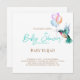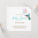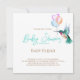 Convide os convidados para o seu chá de fraldas com este convite elegante desenhado com um beija-flor intricadamente detalhado e balões de cor suave. Estimulado em branco clássico com guião ouro e aqua. Artesanato original pintado à mão em aquarela.