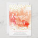 Salto de aquarela com recife de coral branco e tipografia de confete de ouro convite personalizado para janto de ensaio de casamento em praia.