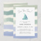 Esses convites de chá de bebê simples e minimalistas são perfeitos para celebrações náuticas! Eles apresentam seu texto personalizado em tipografia clássica e um script manuscrito estiloso para um título marítimo atraente: "Sea you Soon" (Nos vemos em breve), que pode ser alterado para "Baby On Board!" (Bebê a Bordo!). O design simples é decorado por um adorável barco em aquarela azul e listras de diferentes tons do oceano, o que dá um toque costeiro a este convite de chá de bebê para menino. O verso apresenta as mesmas listras em verde e azul marinho em aquarela. Crie o seu clicando no botão "Personalizar".