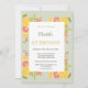 Este primeiro convite de aniversário com limões aquosos, laranja e xadrez verde.