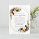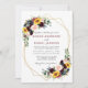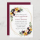 A moderna Elegante Watercolor Burgundy Marsala, Dourada Geométrica Floral, Convite para Casamento de Quadros Floral, inclui rosas burguentos, rosas cor-de-rosa, flores vermelhas, flores azuis, girassóis, folhas de eucalipto e verde botânico.