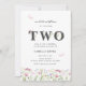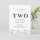 Este elegante segundo convite de aniversário tem flores silvestres e texto de cinza. O verso é cor-de-rosa com uma foto grande. As borboletas acrescentadas lhe dão um toque extra feminino.