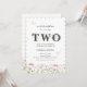 Este elegante segundo convite de aniversário tem flores silvestres e texto de cinza. O verso é cor-de-rosa com uma foto grande. As borboletas acrescentadas lhe dão um toque extra feminino.