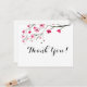 Aquarela de flores de cerejeira com uma fonte elegante de caligrafia, cartão "Obrigado". Personalize este design para você com uma saudação especial e seus nomes.