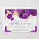 Convite Aquarela Púrpura e Flores Douradas Quinceanera