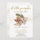 Um convite para chás de fraldas elegante e na moda com abóbora e design floral com ornamentos de ouro. Personalize o convite para o chá de fraldas de abóbora com seus detalhes.