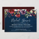 Convite de casamento elegante e moderno com aquarela floral para chá de noiva apresenta um buquê de rosas em borgonha / marsala, rosa bege, roxo, pêssego com folhagem combinando em fundo azul-marinho. Perfeito para um casamento de outono / verão. Encontre mais designs e variações correspondentes na minha loja "blissweddingpaperie". E sinta-se à vontade para entrar em contato comigo para personalização adicional ou itens correspondentes