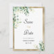 O casamento botânico moderno "Salve a data" apresenta as folhas misturadas de cor aquática verde-verde-rústica de azeitona eucalipto, em conjunto com uma estrutura de ouro clássica. Este design é ideal para um evento de tendências e na moda. Personalize este design com sua própria mensagem e informações personalizadas. Todas as designs são impressas.