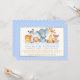 Cartão de Convite Para Chás de fraldas De Animais Safari Para Aquarelas. Os bebês incluem elefante, macaco, girafa, rinoceronte, zebra e leão. Dourado quadro. Fundo Azul.