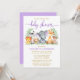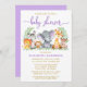 Convite Aquarela Safari Animais Roxos Chá Dourado