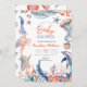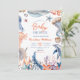 "Aquarela 'Sob o Mar', convite para chá de fraldas com tons vibrantes laranja e azuis, com matizes moles do oceano e elementos aquáticos lúdicos, perfeito para criar uma atmosfera convidativa e colorida para a sua celebração submarina."