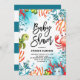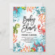 Convide familiares e amigos para o seu evento com este convite para chás de fraldas do tema do mar. Apresenta ilustrações de aquarela de uma tartaruga, caranguejo, baleia e corais coloridos. Este convite marítimo é perfeito para praia e chás de fraldas de verão. Personalize adicionando nomes, data, hora e outros detalhes do evento. Você pode personalizar ainda mais a parte de trás do convite mudando o padrão para uma foto ou qualquer outra imagem.