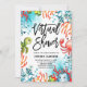 Convide familiares e amigos para o seu evento com este convite para chás de fraldas virtuais, sob o tema do mar. Apresenta ilustrações de aquarela de uma tartaruga, caranguejo, baleia e corais coloridos. Este convite marítimo é perfeito para praia e chás de fraldas virtuais de verão. Personalize adicionando nomes, data, hora e outros detalhes do evento. Você pode personalizar ainda mais a parte de trás do convite mudando o padrão para uma foto ou qualquer outra imagem.