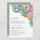 Convide convidados para o seu evento com este convite personalizável para o bebê aspersor. Apresenta suculentes de cor aquosa azul, verde, rosa e ouro. Personalize adicionando seus detalhes. Este suculento convite para a aspersão de bebês é perfeito para chás de fraldas de verão.