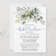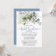 O Cartão de Convite para Chás de panela de Lunco de Cor Biológica Elegante Moderna inclui folhas de eucalipto, folhagem botânica verde, folhas azuis empoeiradas e outros belos lençóis botânicos. Script de caligrafia de tendências. Pó Azul.
