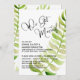 Aqui está uma escolha fresca para as necessidades da sua celebração pós-casamento. Sobre um fundo branco editável, coloquei um gráfico de tipografia que diz "Nós nos Casamos!", apresentando uma fonte de script moderna e linda em preto. À direita do texto, coloquei um único ramo abstrato verde em aquarela que sugere uma samambaia. O mesmo elemento botânico foi duplicado na parte de trás e dimensionado de forma diferente para um apelo visual adicional. Use os campos do modelo para adicionar seus próprios detalhes e clique para personalizar ainda mais se desejar fazer qualquer modificação adicional. Todas as camadas estão desbloqueadas para permitir todo o controle de posicionamento e dimensionamento que você deseja. Você pode redimensionar a folhagem na parte de trás, remover todos menos um, ou até mesmo deixar o fundo branco se desejar. Faça deste cartão o seu!