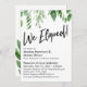 Este design moderno apresenta um gráfico criado a partir de uma fonte manuscrita casual que diz "We Eloped!" e folhagens orgânicas e artísticas renderizadas em aquarela. Todo o outro texto é editável e usa uma fonte versátil com serifa que você pode editar como quiser. Todas as camadas foram adicionadas separadamente e deixadas destrancadas para lhe dar o máximo controle de design; edite esta aparência tanto quanto você precisar, e por favor não hesite em entrar em contato comigo se você precisar de assistência com o processo. // 105 // Desenhado por Melody Watson para Paper Muserie.