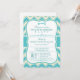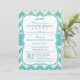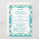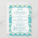 Convite de festas elegante para o aquecimento doméstico em chavão, azul claro e padrão de chevon branco-creme. Convide recursos de chave esquelética e gráficos de aparência de vintage formais.