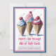Este legal e fofo Convite de festas de 4 de julho é perfeito para um evento especial. Ele apresenta um cone de sorvete pintado a aquarela com cerejas no topo em um estilo de ilustração de desenho animado. O esquema de cores inclui vermelho, branco e azul. Tem uma vibração vintage, o design. É divertido, divertido e único, o design perfeito para impressionar seus convidados.
