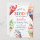 Aqui está o convite para primeiros aniversarios de Sorvetes das Scoop Girls