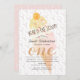 Este doce e fofo " Aqui está a colher!" convite de festas de primeiro aniversario de menina temática apresenta sorvete de morango e baunilha com aspersas e cereja em um fundo de sorvete branco. O verso apresenta um fundo cor-de-rosa pincelado com padrões de sorvete. Personalize para suas necessidades. Você pode encontrar mais produtos correspondentes na minha loja.