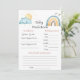 Peça aos seus convidados para preencherem um cartão de Previsões do Bebê ao entrarem no chá de bebê temático Aqui Vem o Filho. Será divertido para os convidados e os futuros pais vão adorar ler as respostas depois do chá.
