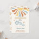 Este adorável convite de vassoura apresenta um sol de aquarela, colocado contra um fundo branco suave. As cores muda de amarelo, laranja e azul combinadas com a fonte retrorativa adicionam uma sensação encantadora de 70 s. Totalmente personalizável com seus detalhes, este convite é perfeito para receber seu pequeno raio de sol.