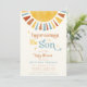 Este adorável convite de vassoura apresenta um sol de aquarela, colocado contra um fundo branco suave. As cores muda de amarelo, laranja e azul combinadas com a fonte retrorativa adicionam uma sensação encantadora de 70 s. Totalmente personalizável com seus detalhes, este convite é perfeito para receber seu pequeno raio de sol.