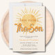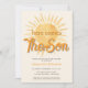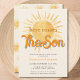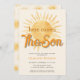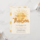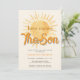 Convide a família e os amigos para o bebê do seu filho temerário com este convite fofo. É decorado com tipografia de na moda e um sol de aquarela amarela sobre fundo de creme macio. As costas estão decoradas com um padrão solar. Facilmente personalizável. Original Watercolor © Michele Davies.