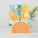 Você está planejando um chá de fraldas? Este convite colorido para o chá de fraldas com tema solar apresenta "Aqui Vem O Sol" em retrorreflectotipografia sobre um fundo de explosão solar com margaridas brancas. Facilmente personalizável.